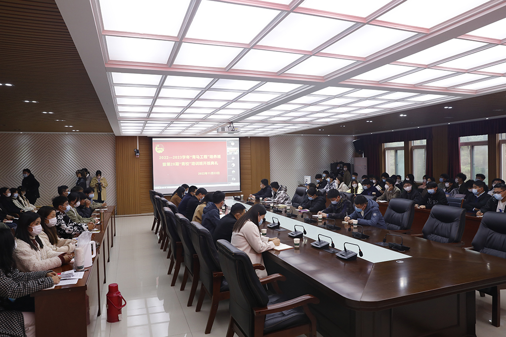 为深入学习宣传贯彻党的二十大精神,不断提升青年学生政治理论素养,增强使命担当,11月22日下午,学校在人文楼208会议室,举办2022-2023学年“青马工程”暨第28期“青校”培训班开班典礼。校党委专职副书记施昌海出席开班典礼,并作首场辅导报告。