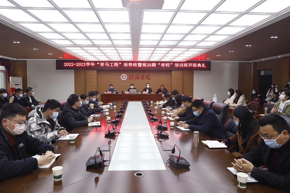 开班典礼采取主会场与分会场相结合的形式进行。校党委组织部、学工部、校团委等有关部门负责人,各学院党总支书记、学工秘书、团总支书记、辅导员及青马、青校学员参加了典礼。团委书记郑山峰主持开班典礼。