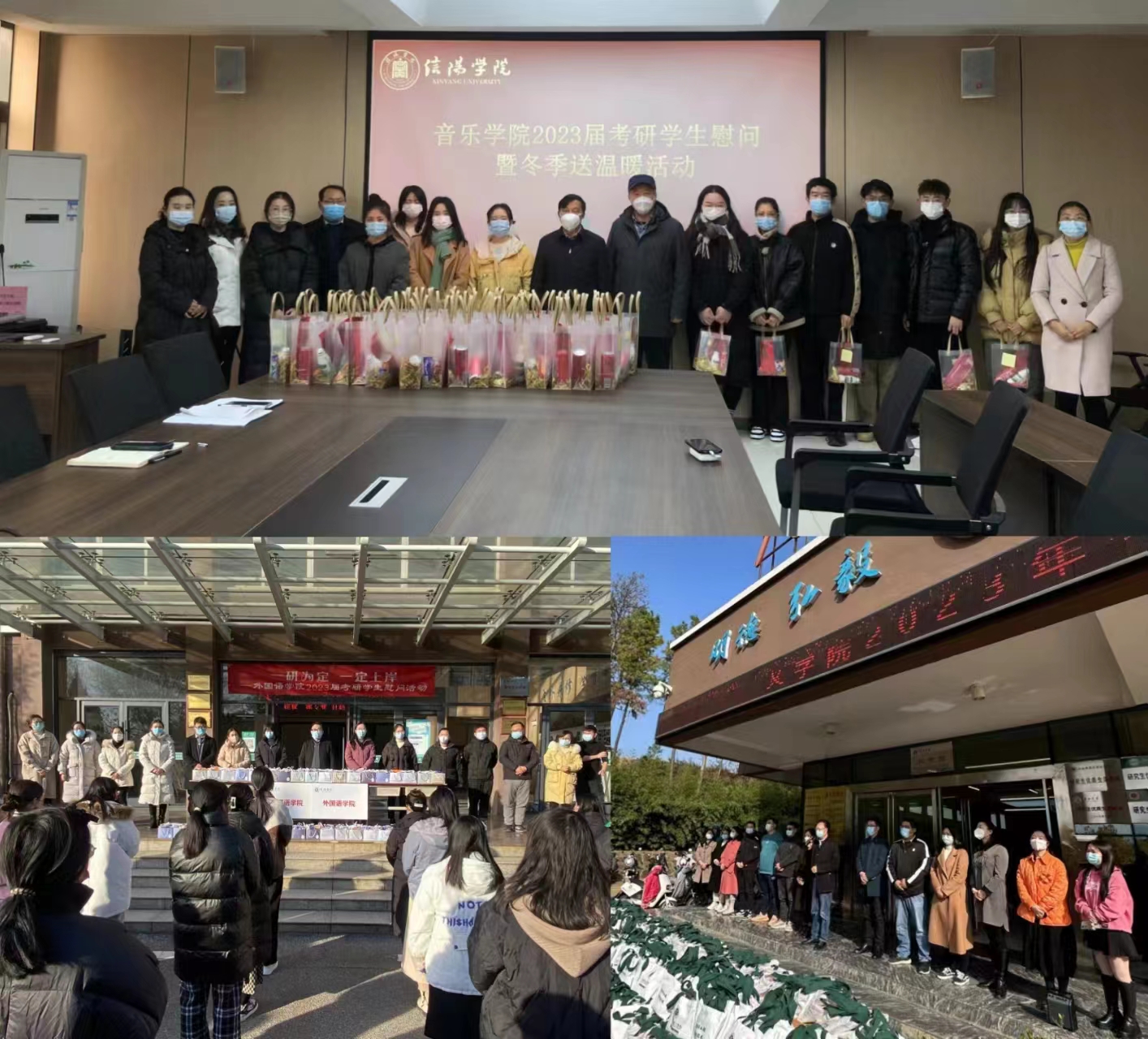 寒冬显暖意,学子受激励。为鼓舞莘莘学子考研士气,坚定考研信心,缓解备考压力,近日,学校组织开展了系列考研送温暖慰问活动,为在校考研学子送去温暖祝福和亲切关怀,勉励大家积极备考、勇夺佳绩。
