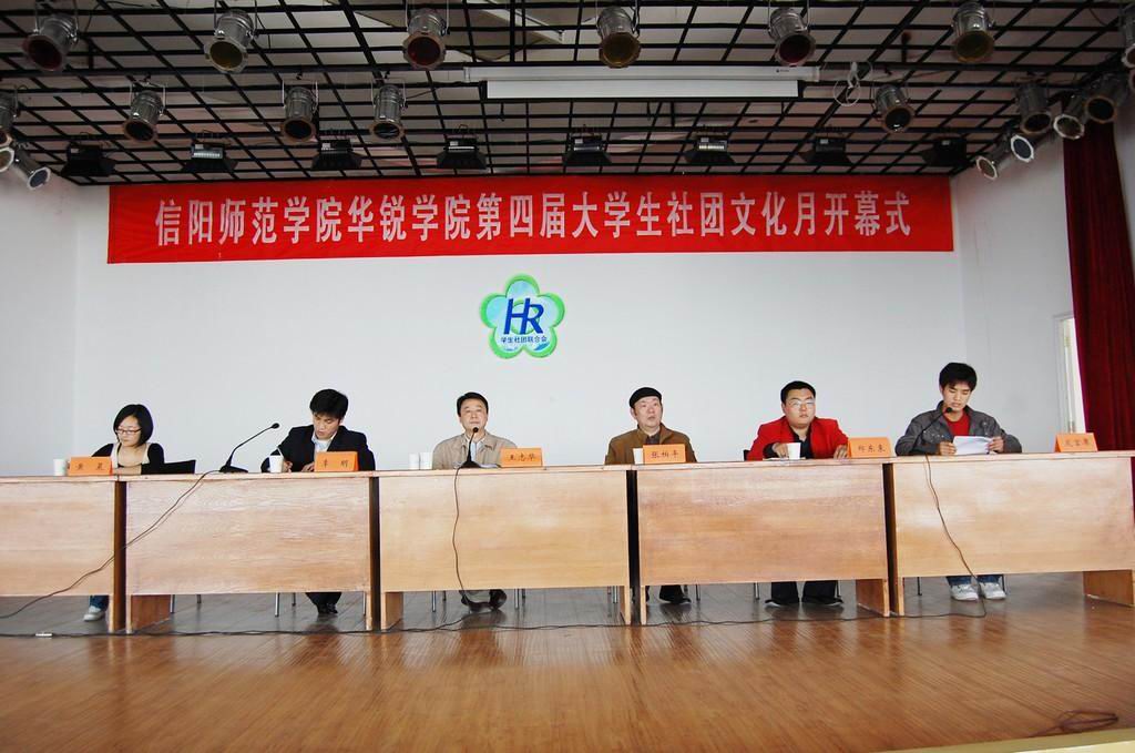 为纪念五四运动90周年,庆祝中华人民共和国成立60周年,进一步校园文化生活,展示我院社团精神风貌,营造文明健康向上,充满生机活力的社团文化氛围。4月9日,我院第四届社团文化月活动开幕式在大学生活动中心隆重举行。副院长王志华,办公室主任张柏平,团委书记、学工部副部长李明,各系团总支书记和各学生社团代表300余人参加了开幕式。会议由李明主持。