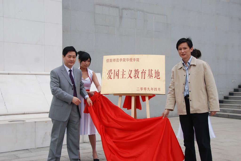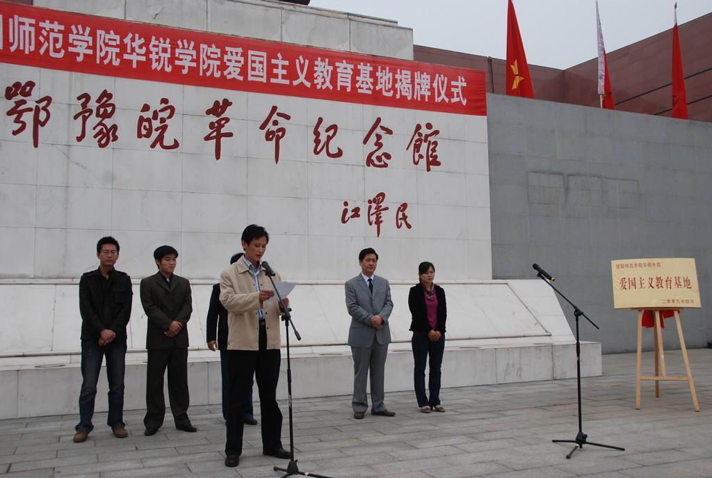 鄂豫皖革命纪念馆书记吴世儒和我院党委书记祝军共同为信阳师范学院华锐学院爱国主义教育基地揭牌。