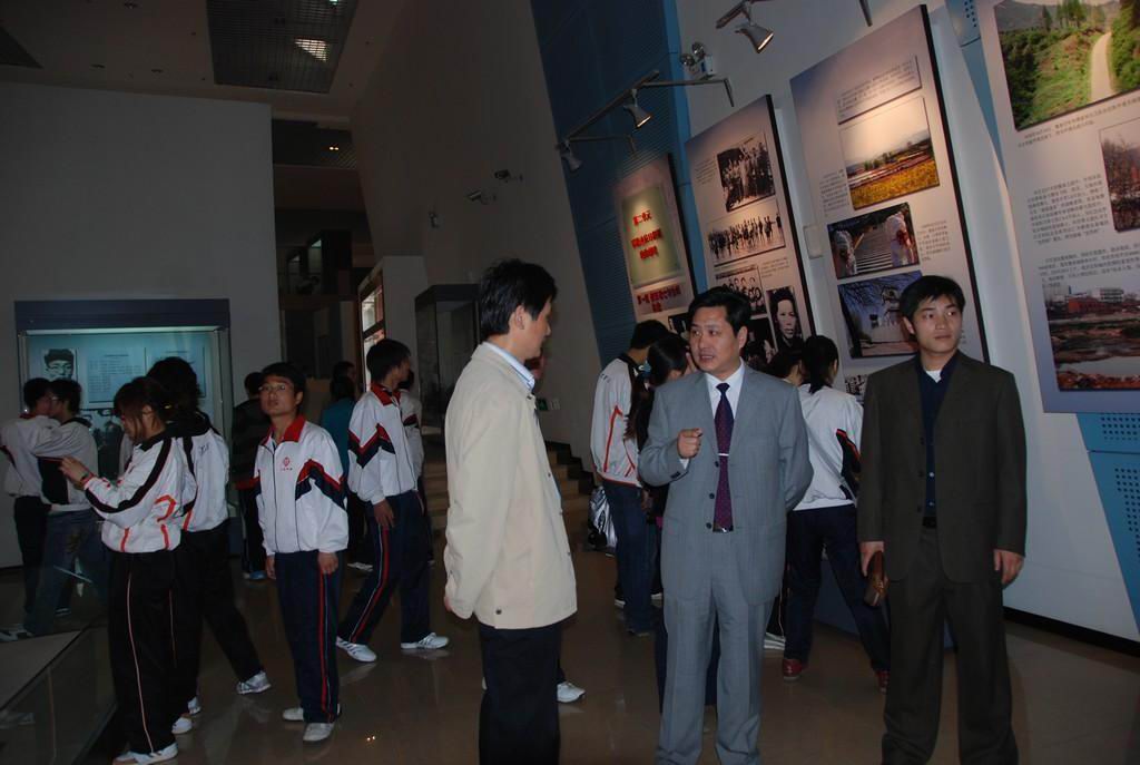 为纪念五四运动90周年、庆祝中华人民共和国成立60周年,深入贯彻落实《爱国主义教育实施纲要》和《中共中央国务院关于进一步加强和改进大学生思想道德建设的若干意见》,弘扬爱国主义精神,进一步发挥和利用信阳丰富的红色教育资源,不断加强学校精神文明建设。4月12日,我院在鄂豫皖革命纪念馆隆重举行爱国主义教育基地揭牌仪式。