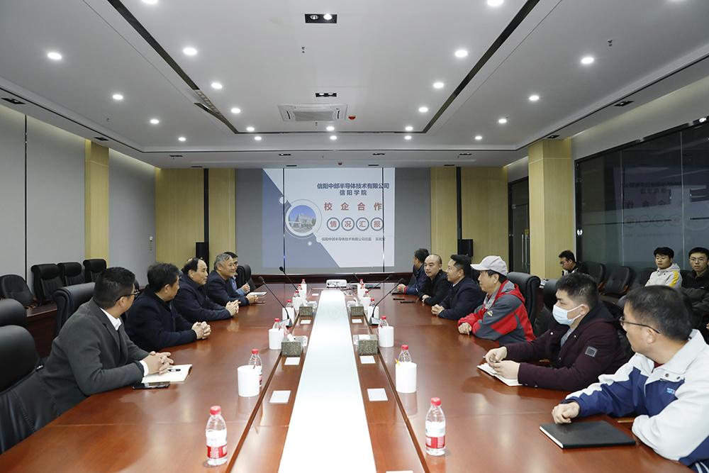 为进一步推进示范实践实习基地建设工作,3月20日下午,校长王北生、副校长王强带领教务处处长陈文涛,理工学院院长肖生发、机械电子工程教研室主任曹国廷等前往信阳中部半导体技术有限公司进行考察,受到了信阳中部半导体技术有限公司总经理陈本亮、公共事务部总监吴宪军等热烈欢迎。