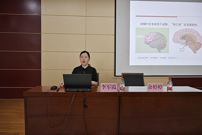 会议特邀焦作师范高等专科学校心理中心主任、河南省高校首批心理健康名师工作室负责人李军霞教授作题为《运用“走心桌游”提升辅导员谈心谈话品质》专题讲座。李教授以心理健康教育缘起及意义为起点,介绍了大学生大脑前额叶的发展规律,她提出大学生前额叶的发展尚不成熟,因此对于学生出现的各种情绪问题要以“平常心”看待。随后她讲述了高校学生常见心理问题及症状识别。她强调,应积极与学生建立良好的信任关系,做到学生心理问题的“早预防、早识别、早干预”。最后她结合工作中的具体实例,通过“走心桌游”技术为大家重点讲解了面对学生时的沟通策略与技巧。她表示,大学生心理的健康发展离不开教师用合适的态度和关爱的言语进行交流和沟通。辅导员身处学生工作一线,掌握丰富的心理健康知识不仅有助于引导学生健康阳光的自我发展,同时也有助于加深辅导员对自身心理健康发展的理解。讲座中,老师们与李教授积极互动,针对自己工作中遇到的实际心理问题案例和困惑进行交流和分享。