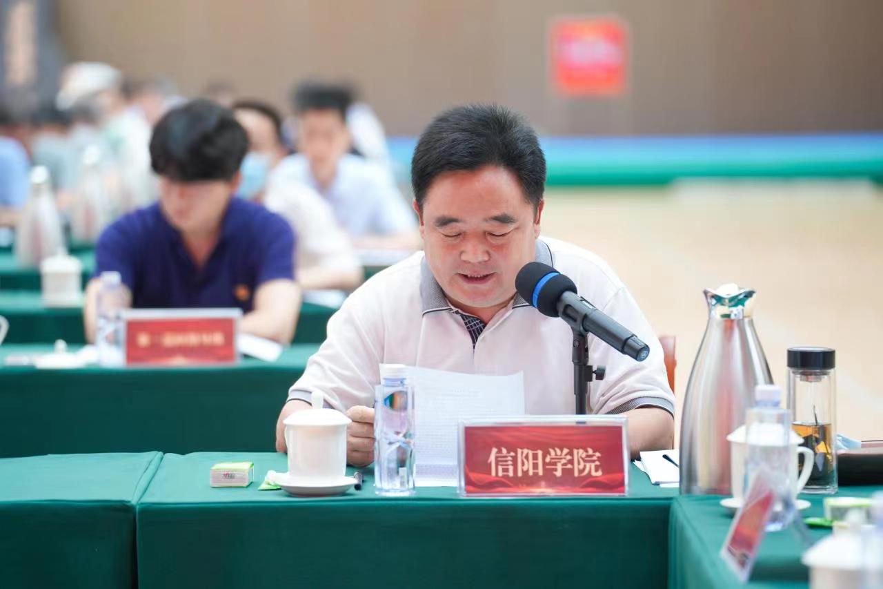 褚金海以《聚焦“12345”工作举措,推动主题教育见行见效》为题作典型经验交流发言。他提出,信阳学院紧紧围绕目标任务,结合重点工作和高质量发展需求,以“12345”工作举措为重要抓手,把“理论学习、调查研究、推动发展、检视整改、建章立制”有机融合、贯通起来,“五位一体”协同推进主题教育各项重点工作。他从三个方面介绍了学校开展主题教育情况。一是创新载体形式,推动理论学习提质增效。通过办好专题读书班和组建马克思学院教师讲习团和学生向阳宣讲团,实现理论学习全员覆盖、全方位覆盖,进一步学深悟透习近平新时代中国特色社会主义思想。二是“清单化”推进调研整改,破解学校发展难题。根据学校内涵式建设重点任务,以推动工作为目标导向,梳理建立了问题清单、调研清单和成果转化运用清单等“三个清单”;将合格评估整改、干部队伍建设、基层组织建设、校园安全、毕业生就业质量提升等列为校级重点关切问题,通过明确责任领导和整改时限,切实把调查研究和检视整改成果转化为推进高质量发展的实际成效。三是开展“五大专项行动”,助推学校事业高质量发展。在调研检视的基础上,根据学校发展和师生关切的五个重点问题,结合学校当前重点难点工作,全面开展干部队伍素质能力提升、合格评估整改提升、师生党支部结对共建、校园安全大起底和高质量充分就业“五大专项行动”,坚持项目化推动,促进高质量发展。他强调,学校将以这次推进会为契机,全面落实省委教育工委部署要求,做到规定动作不走样、不漏项、落到位,“自选动作”做出彩、出特色,以务实之举确保学校主题教育走深走实、见行见效。
