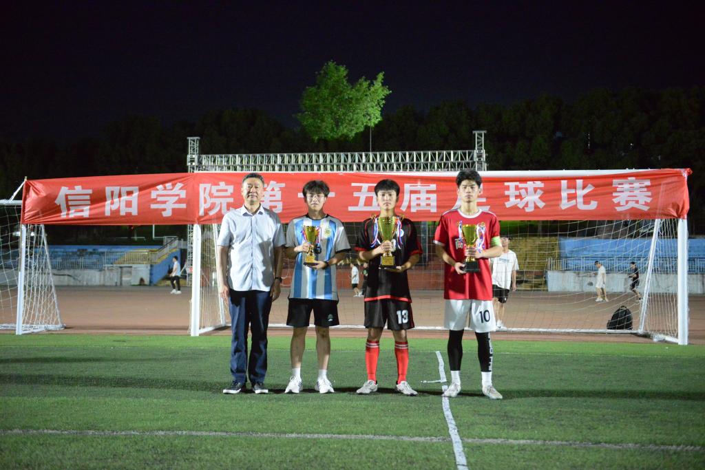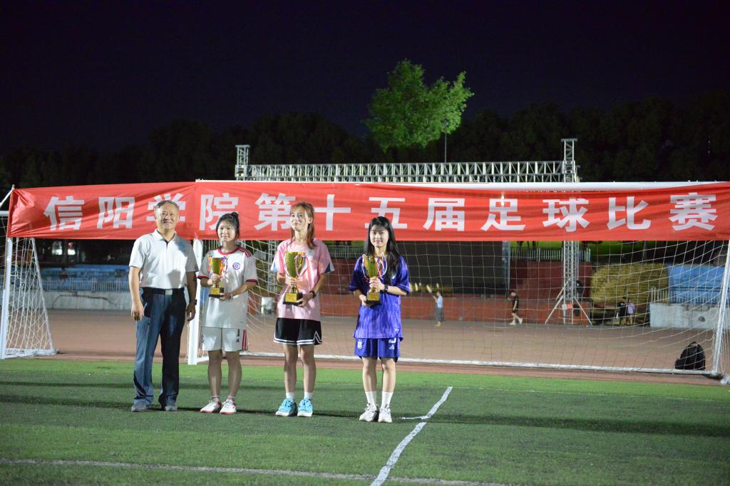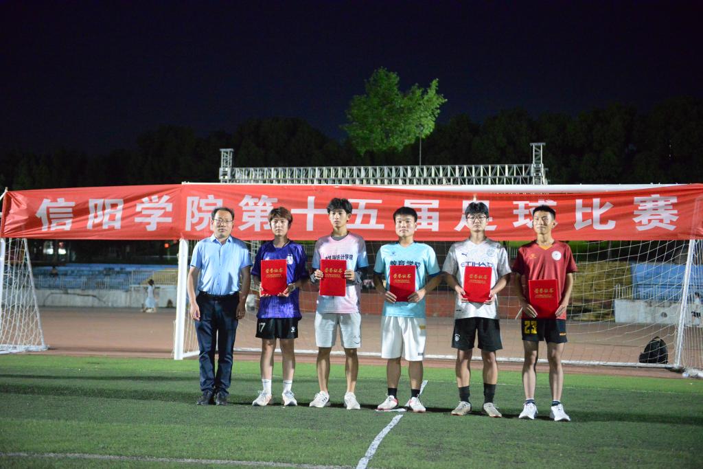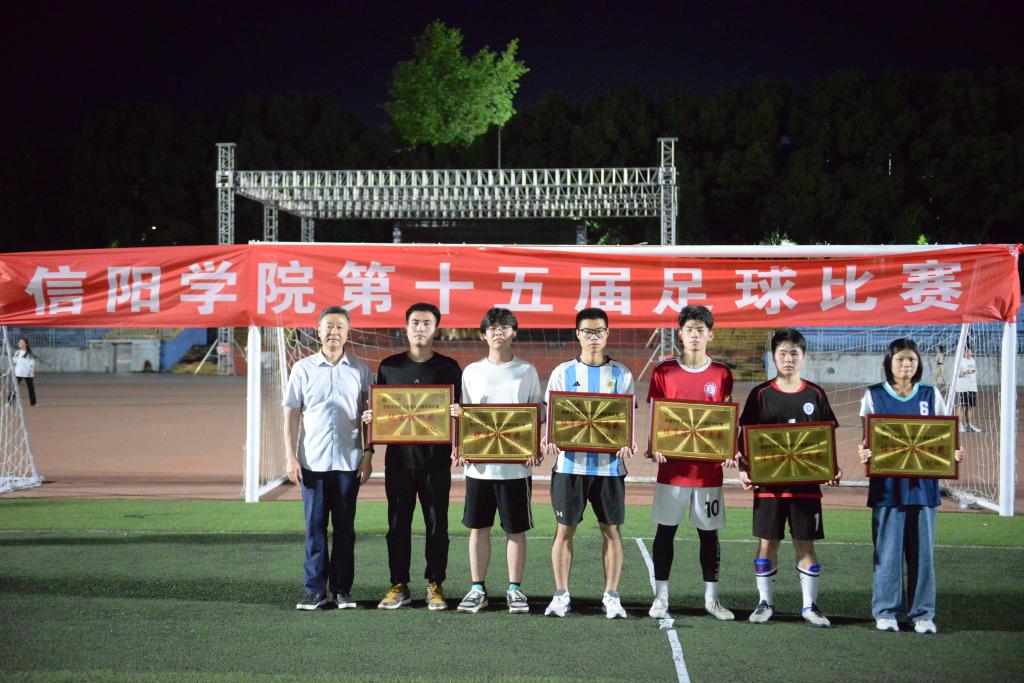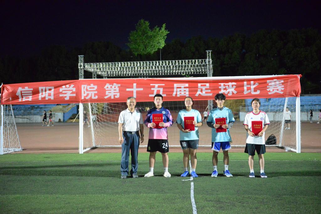 6月14日下午,“信阳学院第十五届足球比赛”在学校田径场落下帷幕。学校体育运动委员会主任、副校长王志华,副校长王强出席闭幕式。公共体育教学部主任周曙光、校团委书记郑山峰和各二级学院领队老师参加了闭幕式。
