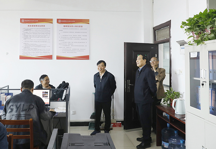 随后,王北生、施昌海走进有关教研室和省级样板党支部工作室、大别山文化育人工作坊,与正在工作的干部教师进行亲切交流,表示诚挚慰问。