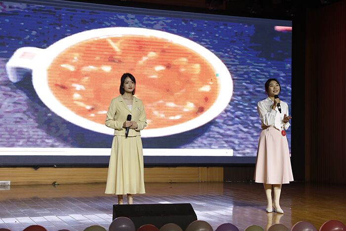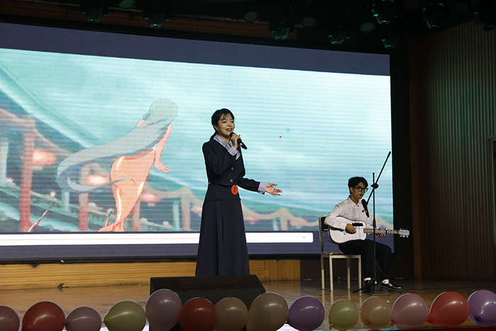随后,选手们分别搭档主持了《跟着诗歌去旅行》《躲海里看世界》《佳食妍客》《美时美刻》《青年大学习》《信院新时空》等节目。才艺展示环节,选手们以相声、歌舞、吉他弹唱、舞蹈串烧、配音秀等形式,尽显看家本领,以优美的舞姿,动人的音弦以及逗人发笑的“包袱”让众人看到了新一代青年大学生迎光前行的炽热生机、向阳生长的蓬勃朝气。最后,外国语学院的万若兰同学为大家演唱了歌曲《身骑白马》,大赛在一声声美妙的歌喉中落下帷幕。
