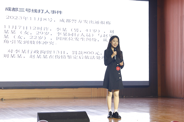 比赛分为模拟主持、搭档主持、才艺展示三个环节。在单人主持环节,教育学院秦俪瑗的《走进苏轼》,上演了苏东坡与美食的奇遇;商学院胡梦佳的《闪亮的中国》,表达了如今国家的繁荣富强,离不开每个共产党人的拼搏与奋斗;文学院李妍讲解了《影视时光》;文学院王施恩的《豫风楚韵》见证了一个现代、宜居、美丽的都市——信阳;理工学院刘玉豪的《影视里的中国》,通过网络短剧《逃出大英博物馆》介绍了中国流失文物的现状以及当代青年应当肩负的责任;社会科学学院孙晨用《今日话题》引发众人深思,从个人到国家,包容与和谐熠熠生辉;土木工程学院王梦鑫介绍了《中国榜样》;商学院苏彤娓娓道来《舌尖上的中药》,以中药酸梅汤为引呼吁大家更好传承和发展中医药;数学与统计学院的王哲带来了《网络热点闲谈》;社会科学学院范佳琪通过《传统文化进万家》呼吁大家共同努力,让传统文化焕发新的生机;教育学院贾赵然身着华丽戏服,呈现了《戏韵中国》;文学院尚知蔚以《微光》倡导人们从小事做起,争做向上向善好青年。