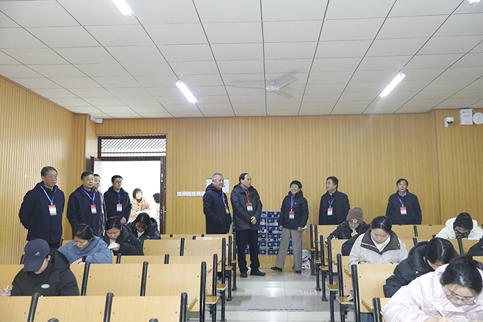 校领导首先到社科楼进行集中巡考,看望慰问在本教学楼参加期末考试和担负监考任务的师生。随后,分别在有关职能部门负责同志陪同下,深入所联系学院,与各学院院长、书记等一同巡视了相关考场,对考试组织、考场布置、考场秩序、考场环境、监考人员履职尽责及学生遵守考纪等情况进行检查。从检查情况看,本次期末考试工作准备充分、安排周密、秩序井然、进展顺利;监考教师精神饱满,恪尽职守,认真履职监考职责;学生认真答题,自觉遵守考试纪律,展现了良好的学风考风。