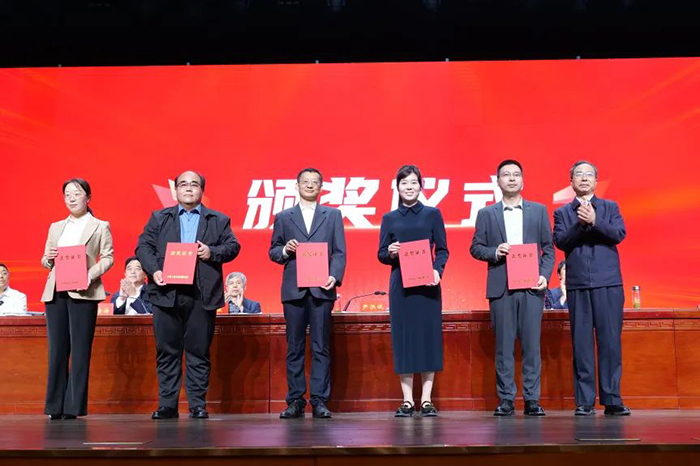 在热烈的掌声中,尹洪斌为第三届全国高校思政课教学展示活动我省特等奖获奖教师颁发证书,陈凯为第三届全国高校思政课教学展示活动我省一等奖获奖教师颁发证书,杨宗辉为第三届全国高校思政课教学展示活动我省二等奖获奖教师颁发证书。
