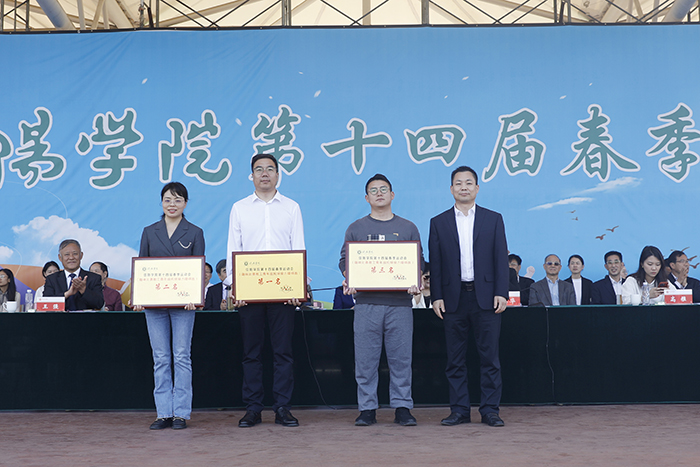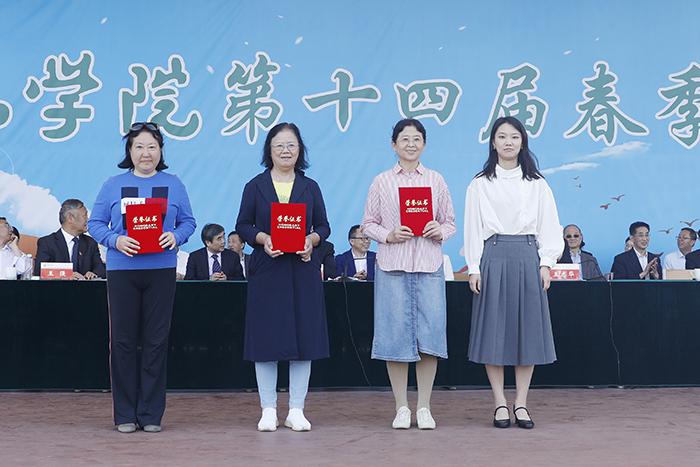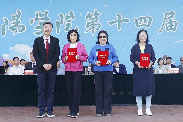 校领导为前期举行的托球障碍跑、保龄球、跳绳等教工趣味竞赛项目前三名的单位和个人颁奖;相关单位负责人为拔河、跳绳、托球接力障碍跑等学生趣味竞赛项目团体前三名单位颁奖。