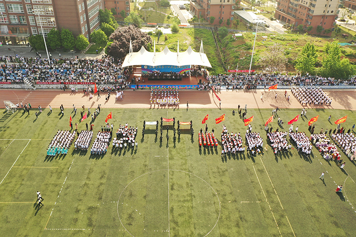 在热烈喜庆的气氛中,王北生郑重宣布学校第十四届春季运动会开幕。