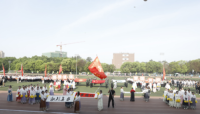 4月25日,学校第十四届春季运动会在田径场举行。校长王北生,副校长王志华、王强,校长助理高雅、杨高伟、张永志等在校校领导出席开幕式。各学院院长、书记,各职能部门负责人,数千名参赛运动员、裁判员、教练员和师生代表参加了开幕式。王志华主持了开幕式。