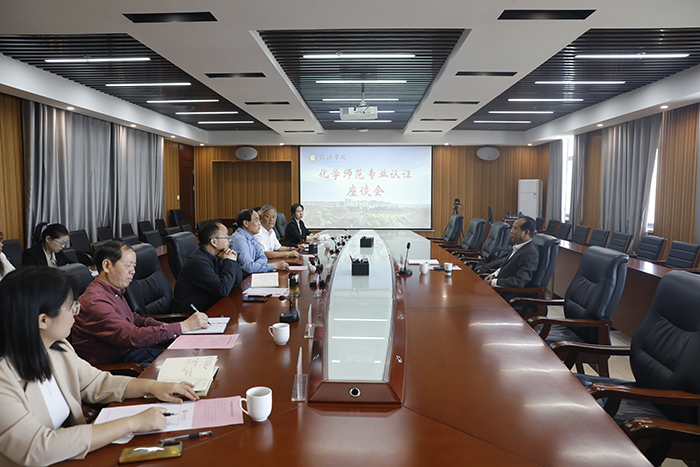 座谈会上,张新民与相关部门负责人及化学专业教师进行了深入交流,针对在开展师范类专业认证过程中遇到的问题进行了详细解答。