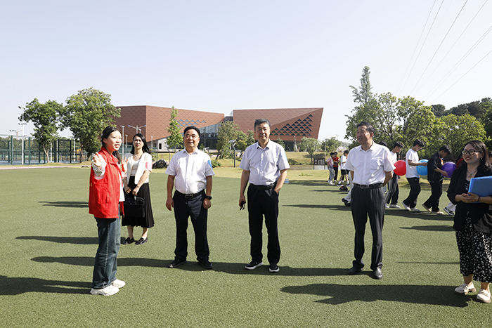 各位领导与现场师生亲切互动。褚书记对各学院精巧创意的活动设计,青春洋溢的精神风貌给予了充分肯定。他表示,心灵派对,寓教于乐,使广大师生释放压力,愉悦身心,不但增强了团队合作意识,还培养和塑造了积极向上的健康心态。相关单位要深耕学生心理特点和需求,持续探索符合学生心理健康发展的各类创新工作形式,促进学生心理素养全面提升。