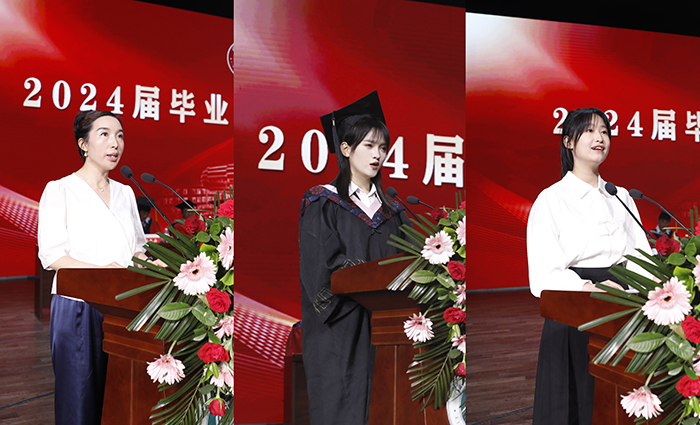 教师代表、河南省教学标兵、河南省文明教师、第五届河南省本科高校教师课堂教学创新大赛一等奖获得者贾彦茹副教授鼓励毕业生们要坚持奋斗、勇于创新,勇敢迎接人生的每一个挑战,追求卓越。