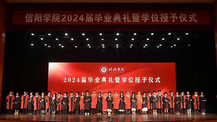王强宣读《信阳学院关于授予2024届本科毕业生学士学位的决定》,授予符合条件的5526名2024届本科毕业生学士学位。