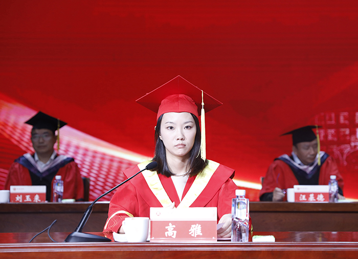 颁奖典礼结束后,高云、王北生等校领导和校学位评定委员会委员共同为2024届毕业生代表授予学位,正冠拨苏。