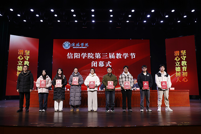 为深入贯彻落实党的教育方针,搭建研讨交流平台,扎实推进本科教学改革创新,全面提高人才培养质量,12月4日下午,信阳学院第三届教学节闭幕式在音乐厅召开。副校长王志华、王强,校长助理高雅,纪委书记、校长助理杨高伟,校长助理张永志出席闭幕式。各部门负责人,各教学单位院长、书记、教学副院长、教学秘书(干事)、教务员、教研室主任及师生代表参加了闭幕式,王志华主持了闭幕式。