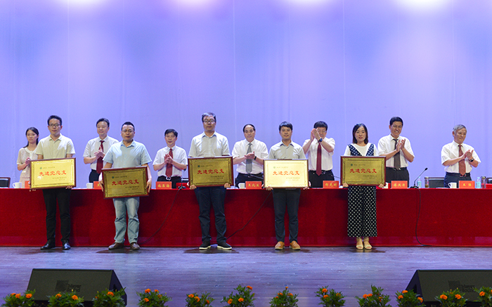 施昌海宣读了《关于表彰2018-2019学年优秀共产党员、优秀党务工作者和先进基层党组织的决定》《关于表彰2018-2019学年优秀导师的决定》等文件。其中,张猛荣获“河南省高等学校优秀党务工作者”,郑山峰等75名共产党员、郭二军等23名党务工作者、文学院党总支等5个党总支和外国语学院教工第一党支部等6个党支部分别荣获学校“优秀共产党员”“优秀党务工作者”和“先进基层党组织”称号;曹艳贞等54名导师荣获学校“2018-2019学年‘优秀导师’”。