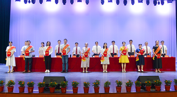 傅洪涛宣读了《关于表彰2018-2019学年目标管理考核优秀单位的决定》《关于表彰2019年生源优势专业的决定》《关于表彰2018-2019学年度优秀教师的决定》《关于表彰第一届“青年教学名师”的决定》《关于表彰奖励2018年度科研成果的决定》等文件。其中,文学院、商学院、教育学院、社会科学学院、数学与信息学院为2018~2019学年目标管理考核优秀单位;教育学类、法学、英语、汉语言文学、音乐学、美术学、会计学、生物科学为生源优势专业;梁法丽、李晓娜荣获“2018年河南省优秀教师”,高永平、杨辉荣获“2018年度河南省文明教师”,杨立昊荣获“2019年度河南省文明教师”,任士伟荣获“2018年度河南省教育系统先进工作者”,李肖利、贾彦茹荣获“2018年度河南省民办教育先进个人”,张孟杰等16位同志荣获“2018~2019学年度优秀教师”;李静等7名同志为信阳学院第一届“青年教学名师”。同时,一批科研成果获得了学校的奖励。
