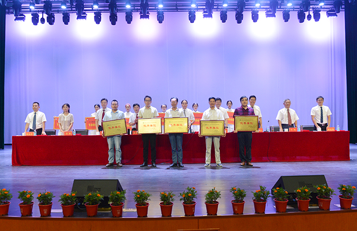 在热烈喜庆的气氛中,大会举行了隆重的颁奖仪式。校领导为获得上述各类奖项的先进集体和个人代表颁奖。
