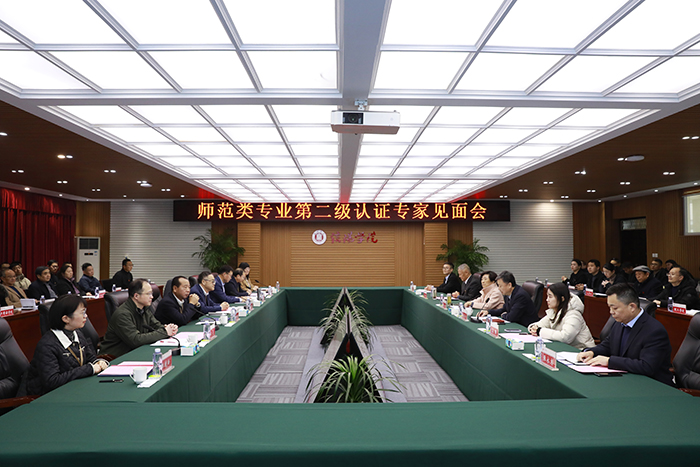 2月27日,教育部师范类专业认证进校考查专家组见面会在人文楼208会议室召开。认证专家组组长、华南师范大学期刊管理中心主任、学报主编王建平,井冈山大学原副校长黄俭根、湖南师范大学化学化工学院副院长谭亮、河南省基础教育课程与教学发展中心戢明等专家组一行,河南省教育厅教师工作处副处长张会敏,河南省教育评估中心副主任张新民,河南省教育评估中心认证部副主任郑晓玲和我校全体校领导出席会议。会议第一阶段由我校副校长王志华主持,第二阶段由组长王建平主持。