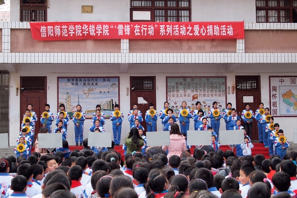 3月5日,我院团委在浉河区第一小学举行了“‘雷锋’在行动”爱心捐助活动,我院师生共向该校捐赠了四台电脑和二十台电脑桌。