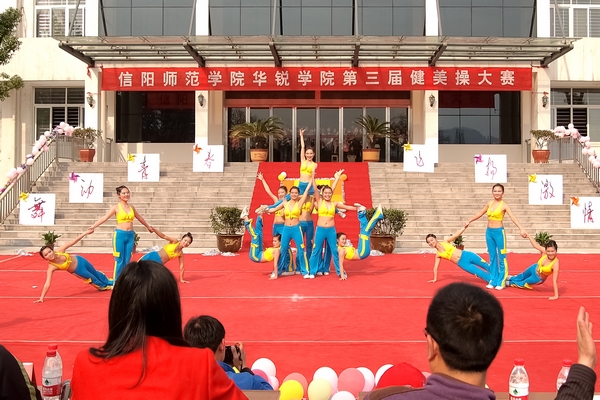 3月28日下午,我院第三届健美操大赛在理工楼前举行,本届大赛的主题为“舞动青春、飞扬激情”。董事长高峰,院长郑定豪,党委书记祝军,常务副院长高云,副院长王志华,各单位负责同志和2000余名师生共同观看了本次大赛。