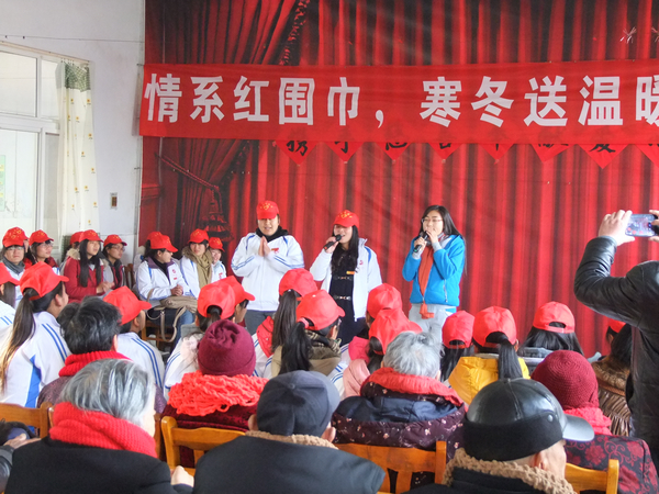 为了这次关爱之行,志愿者们一周来利用休息时间亲手赶织围巾,临行之前共计织好了八十多条红围巾,每一条都是志愿者们亲手所织,每一条都满载着暖暖的爱,映红了老人的脸庞,也温暖了他们的心。敬老院的陈院长表示,志愿者是爱的天使,真诚的希望大家常来看看老人,为他们带来笑声与欢乐。一位志愿者表示,这次的红围巾是他人生中自己织的第一条围巾,通过给敬老院的老人织围巾这个过程,让他想起家中长辈,他表示也要给家里的爸爸妈妈、爷爷奶奶献上自己的爱和温暖。