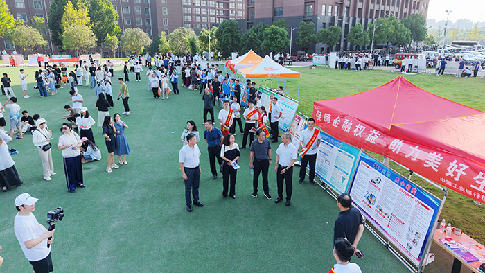 为深入贯彻落实关于金融消费者权益保护工作的相关要求,切实提升我校学生的金融素养与风险防范能力,9月16日下午,学校联合国家金融监督管理总局信阳监管分局、信阳市保险行业协会、信阳市银行业协会及全市银行、保险机构,在综合楼东侧操场成功举办“金融知识进校园”活动。