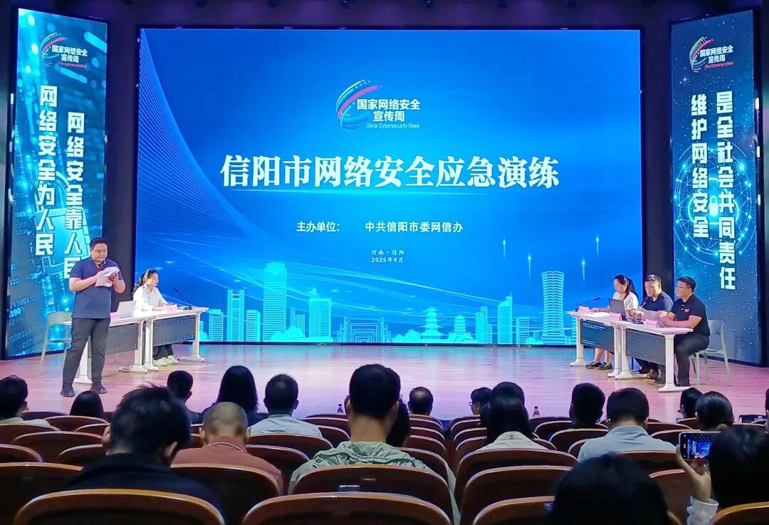 9月15日,2025年国家网络安全宣传周信阳市活动开幕式在我校南湖校区隆重举行。本次活动紧扣“网络安全为人民,网络安全靠人民——以高水平安全守护高质量发展”主题,由市委宣传部、市委网信办、市教育体育局、市工业和信息化局、市公安局、市通信发展管理办公室、市总工会、团市委、市妇联、信阳广播电视台、人民银行信阳市分行联合主办,中国铁塔信阳市分公司与信阳学院共同承办,北京天融信网络安全技术有限公司、河南宝通信息安全测评有限公司协办。