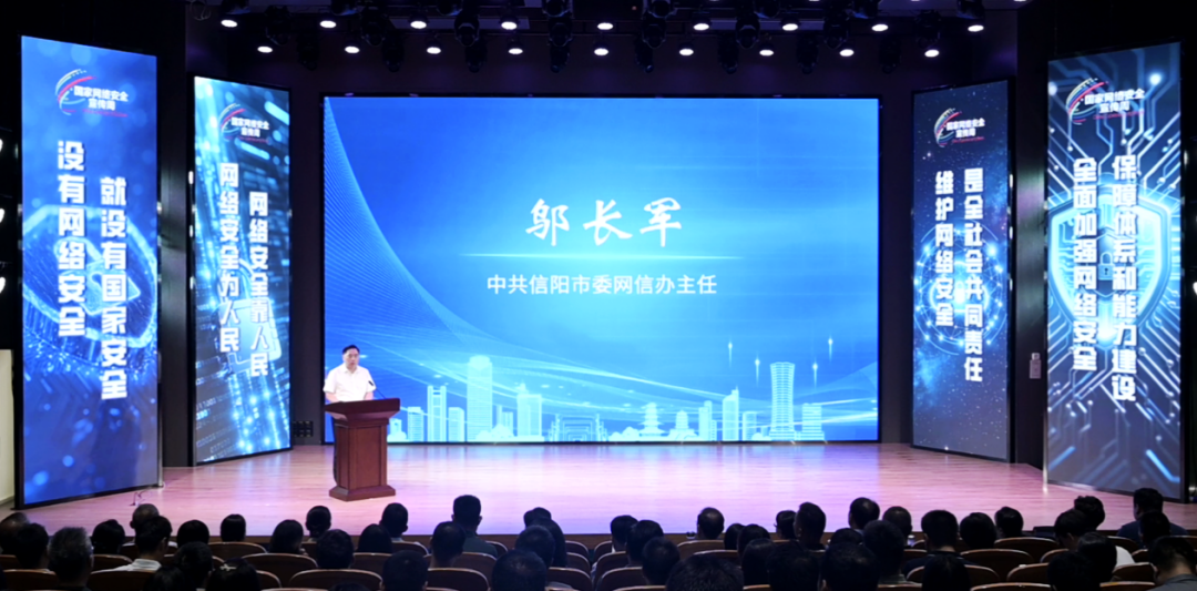 市委网信办主任邬长军出席开幕式并讲话,市通管办副主任、中国铁塔信阳市分公司党委委员、副总经理王好营,我校副校长王强分别致辞。信阳市各主办单位负责人、网络安全领域专家、企事业单位代表及我校师生代表齐聚现场。
