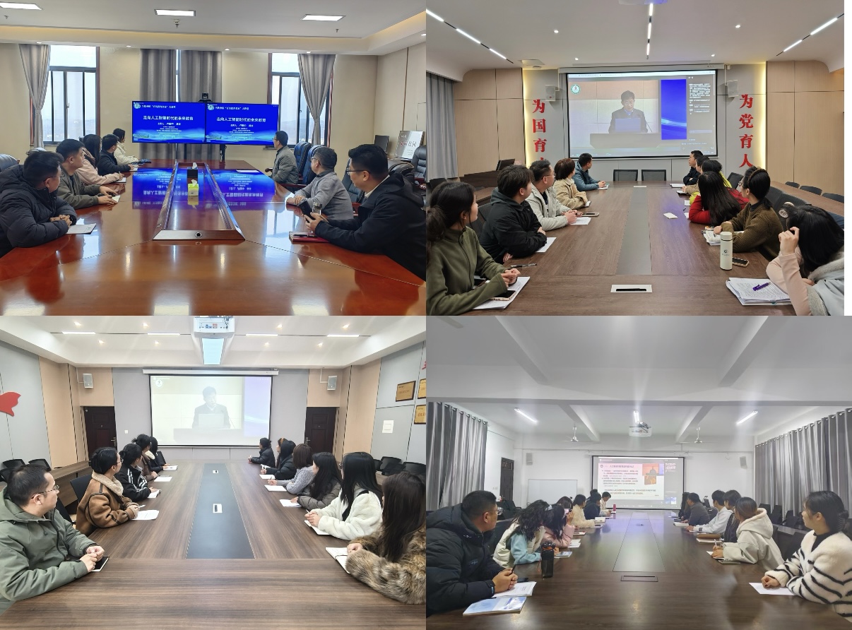 为扎实推进《河南省教育厅办公室关于开展本科高校教师人工智能应用全员培训的通知》《信阳学院教师人工智能素养与能力提升培训方案》落地生根,12月2日下午,学校全体管理岗人员和辅导员参加线上“当代中国百名教育名家”卢晓中教授开展的《走向人工智能时代的未来教育》的专题讲座。