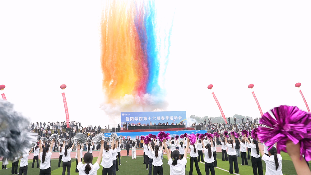 理事长高云宣布信阳学院第十六届春季运动会开幕,并为运动会鸣第一枪,标志着运动会正式拉开激烈角逐的序幕。