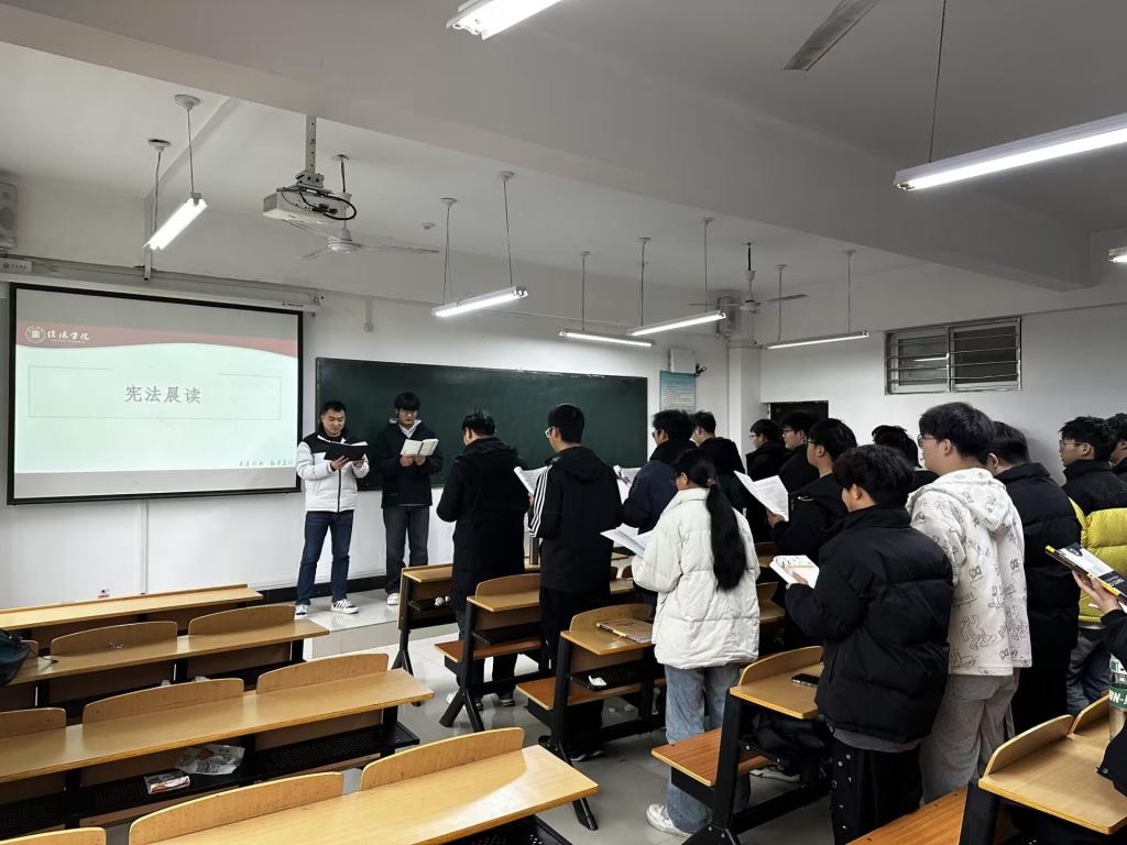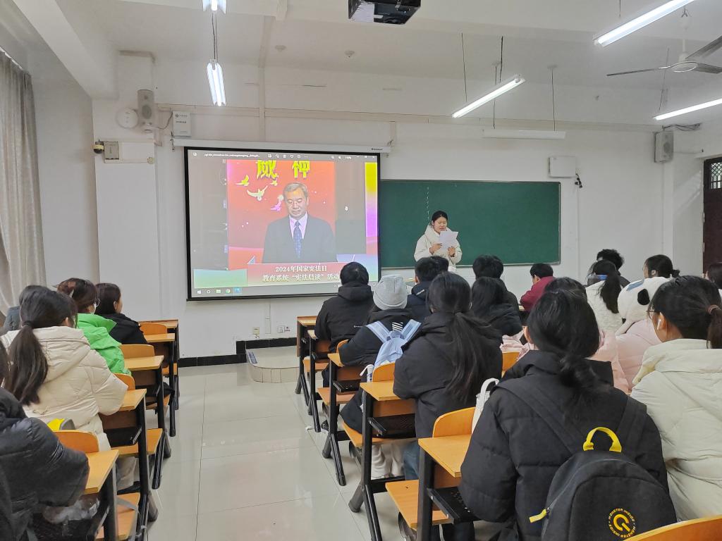 三、开展“宪法晨读”活动。“第一条:中华人民共和国是工人阶级领导的、以工农联盟为基础的人民民主专政的社会主义国家。社会主义制度是中华人民共和国的根本制度……”朗朗读书声读书声,莘莘学子意。12月4日,各二级学院纷纷组织学生通过普法网观看“宪法晨读”直播,同步诵读,共有数万余名学生通过线上线下相结合的方式参与活动。
