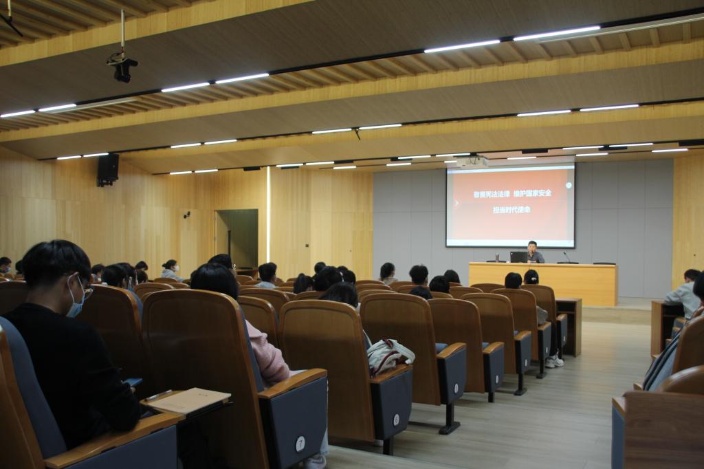 为深入学习贯彻习近平总书记关于教育的重要论述和习近平法治思想,使广大学生深入了解宪法、尊崇宪法,进一步增强我校学生国家安全意识,提高维护国家安全能力。11月8日下午,学校在图书馆101报告厅举办了题为“敬畏宪法法律 维护国家安全 担当时代使命”的普法专题讲座。全体学生通过线上线下相结合的方式收看收听了此次讲座。讲座由社会科学学院梁耀中主讲,学生工作处王威主持。