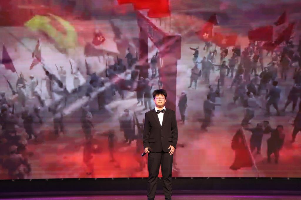 中场休息时,音乐学院的韩易凯同学倾情演绎了歌曲《把一切献给党》,其深情的歌声将现场的气氛推向了高潮。