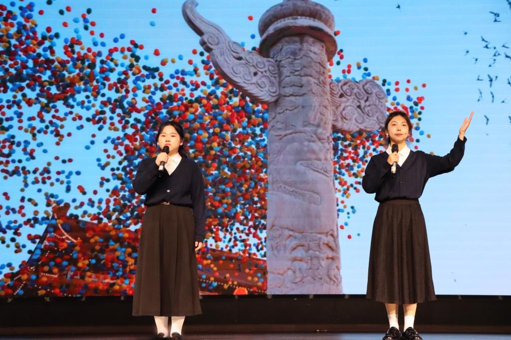 决赛现场,选手们用铿锵有力的声音诵读经典,用饱满的情感诉说爱国深情。从《中华颂》的磅礴大气,到《月光下的中国》的细腻温婉,每一个作品都凝聚了他们对祖国的无限热爱与敬意,让现场观众深切感受到在历史长河中,无数英雄抛头颅洒热血的壮烈与伟大。选手们不仅展示了出色的诵读技巧,更通过声音传递出对祖国的深情告白,赢得了现场观众的阵阵掌声与喝彩。